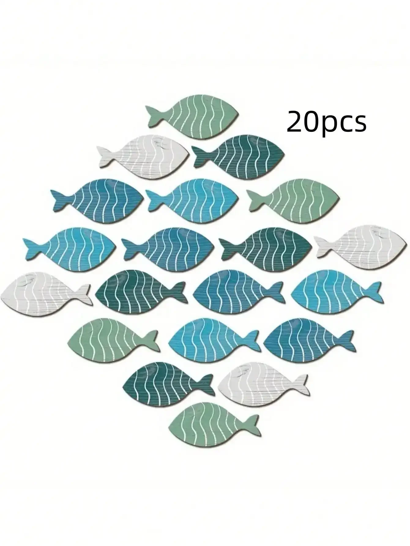 20pcs/set Wooden Fish Wall Decor Coastal Beach Decoration DIY Living Room Wall for Home Lake House Decor