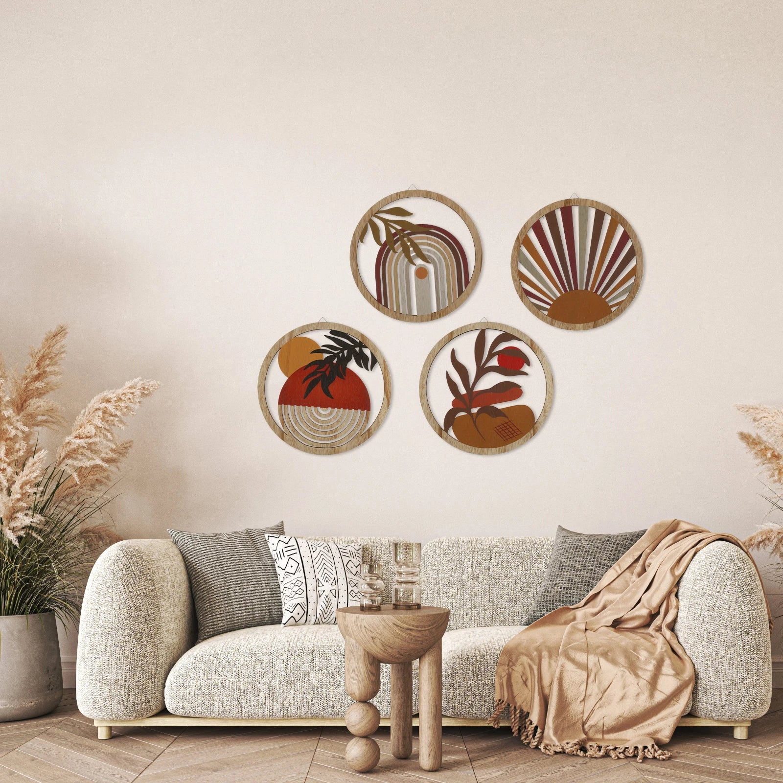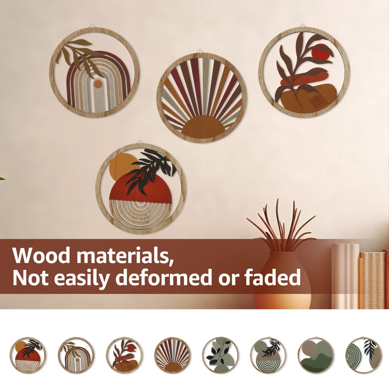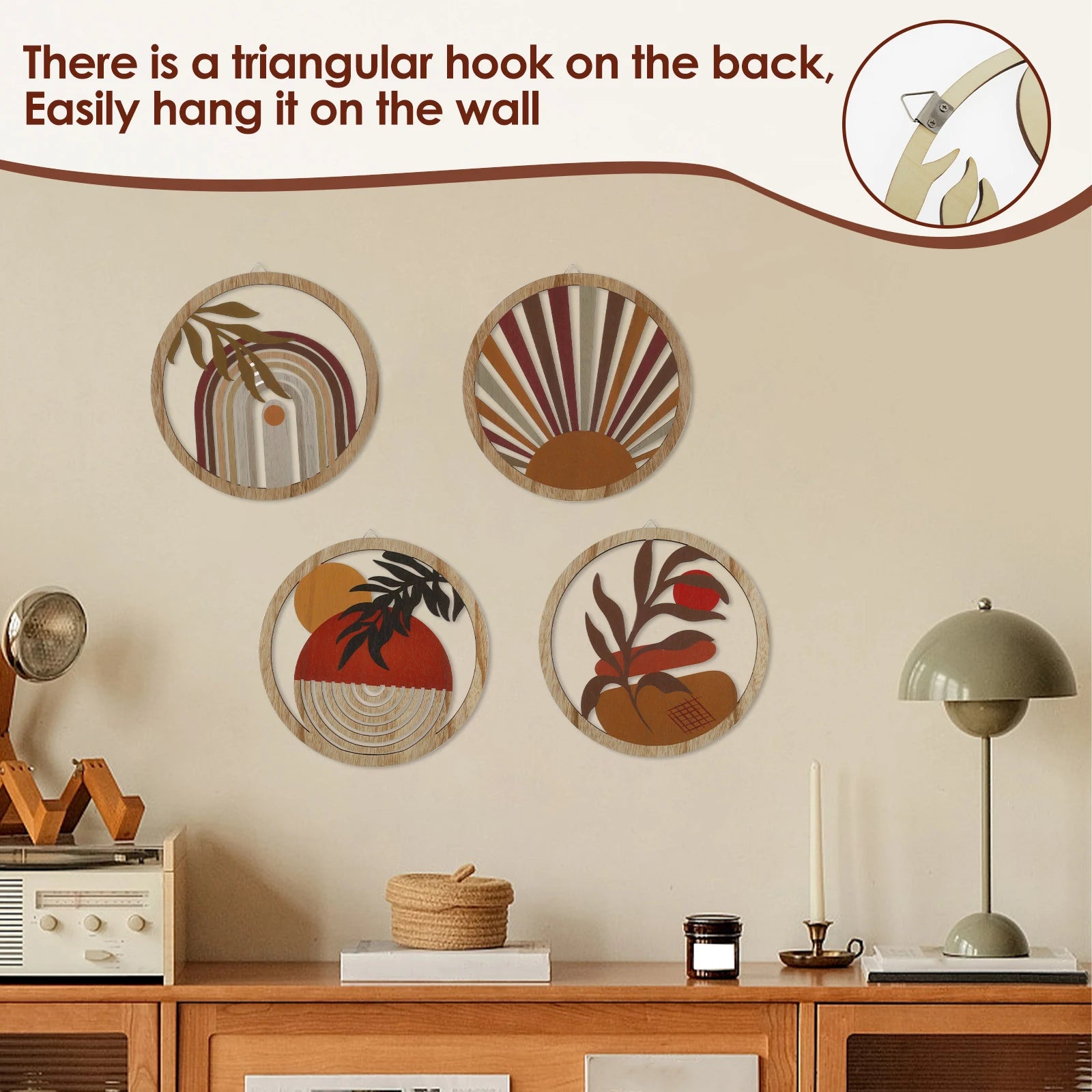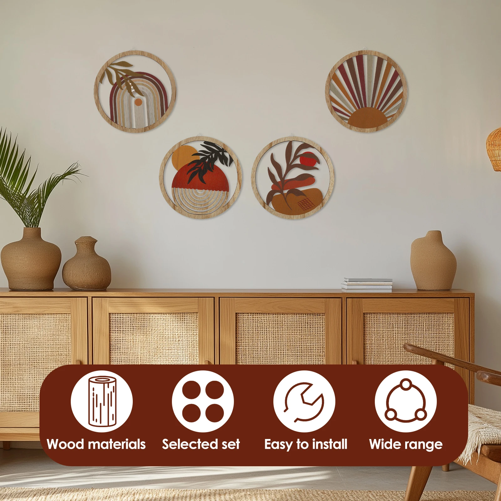 4Pcs Set: The wood wall decor set comes with 4 different styles of bohemian style wall decorations, the patterns are carefully designed. Ideal for decorating, creating artistic ambience