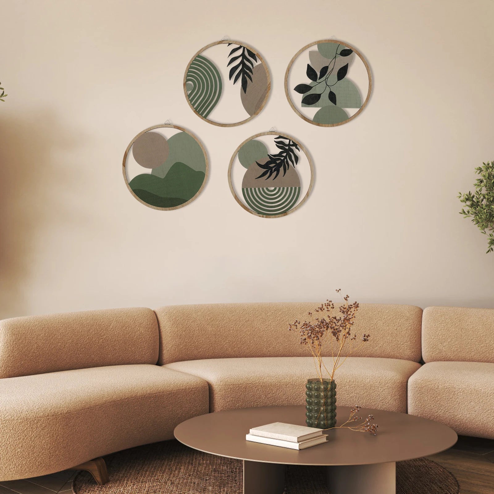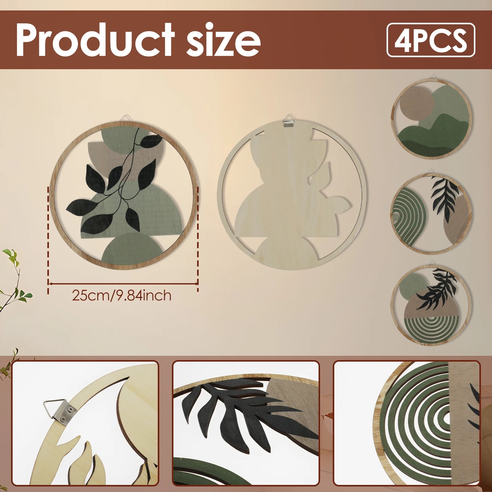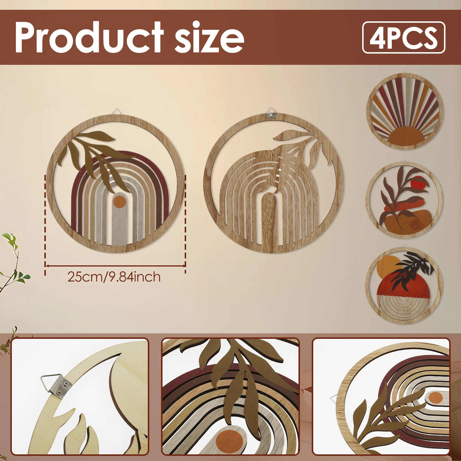 4Pcs Wood Wall Decor Hanging Wall Art Decor Elegant Bohemian Wall Decor