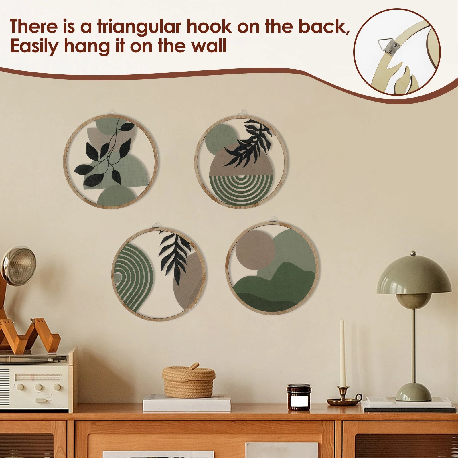 Easy to Install: The wood wall decor is easy to install. It is equipped with a triangular hook on the back, which allows to hang on the wall, shelves and more. Convenient to move and change the position