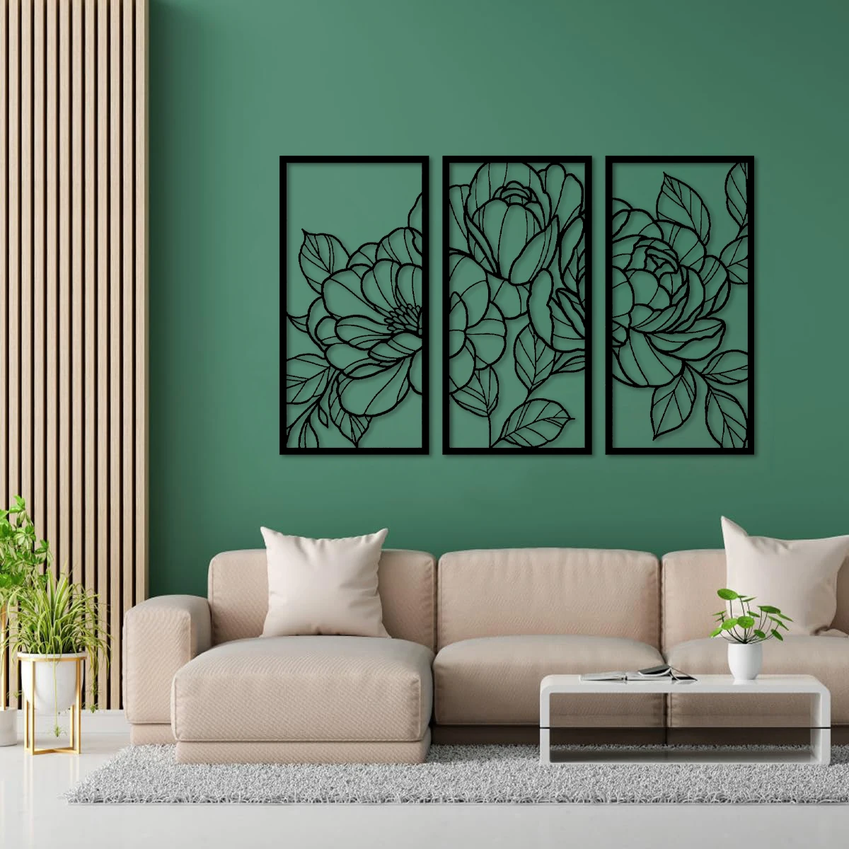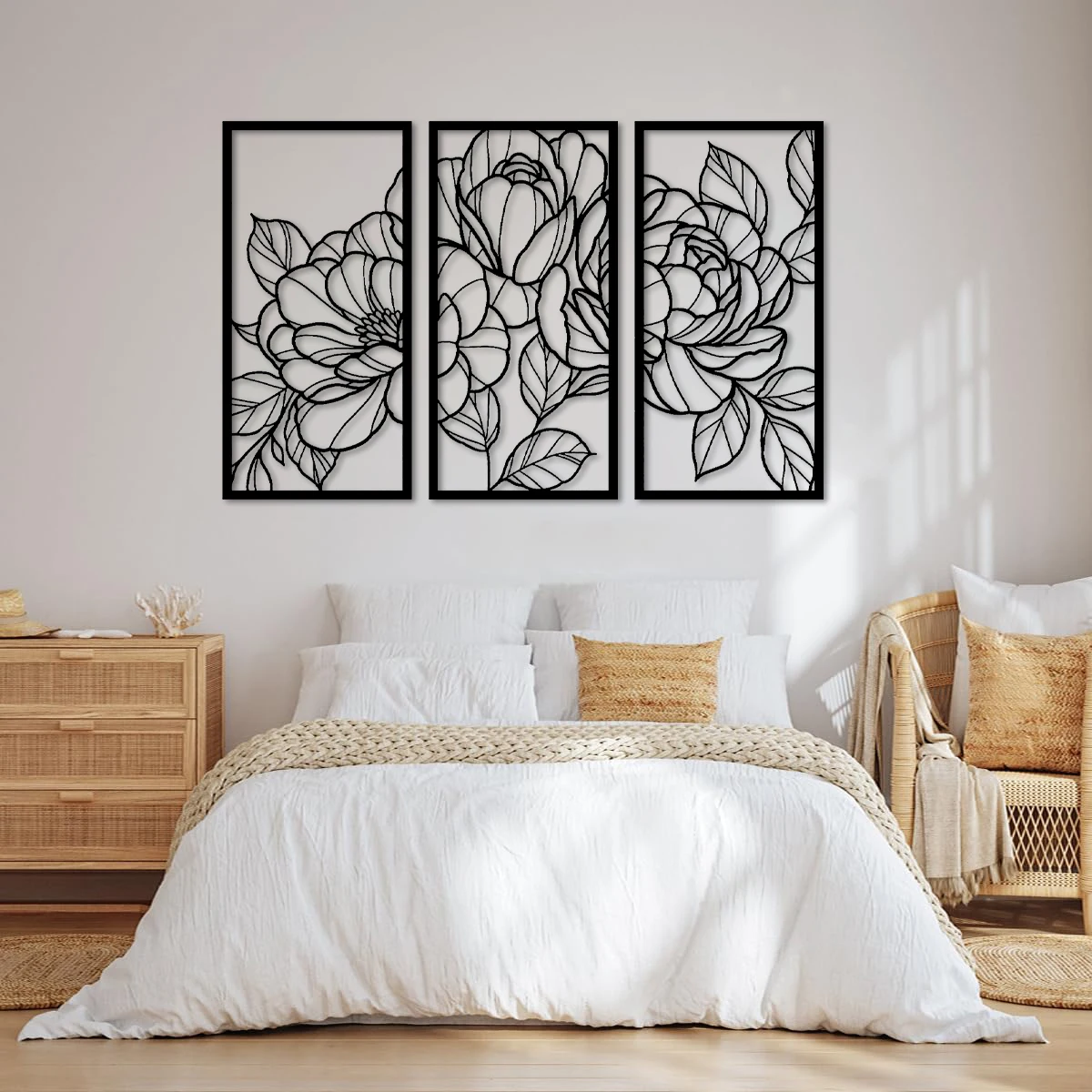 Minimalist Art Wall Decor Floral Gold Flower Wood Art Wall Decor Modern Abstract Flower Wall Art Wood Line Drawing 3 Panels Hanging Bedroom Above Bed Living Room