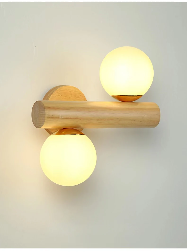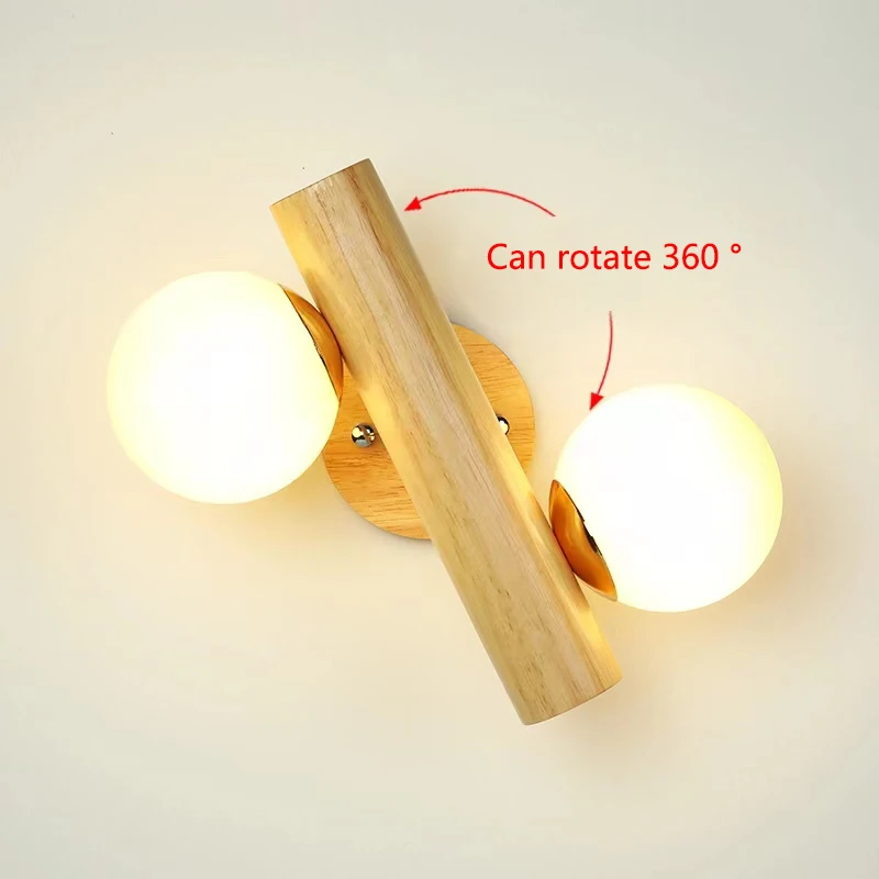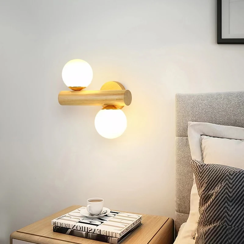 Wooden Wall Lamps for Living Room Bedside Glass ball Decor Luminaires Stairs Aisle Rest Area Farmhouse Background Wall sconce